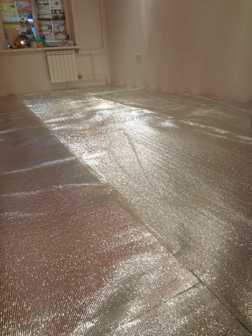 Для теплоотражения стелится лавсановая подложка.