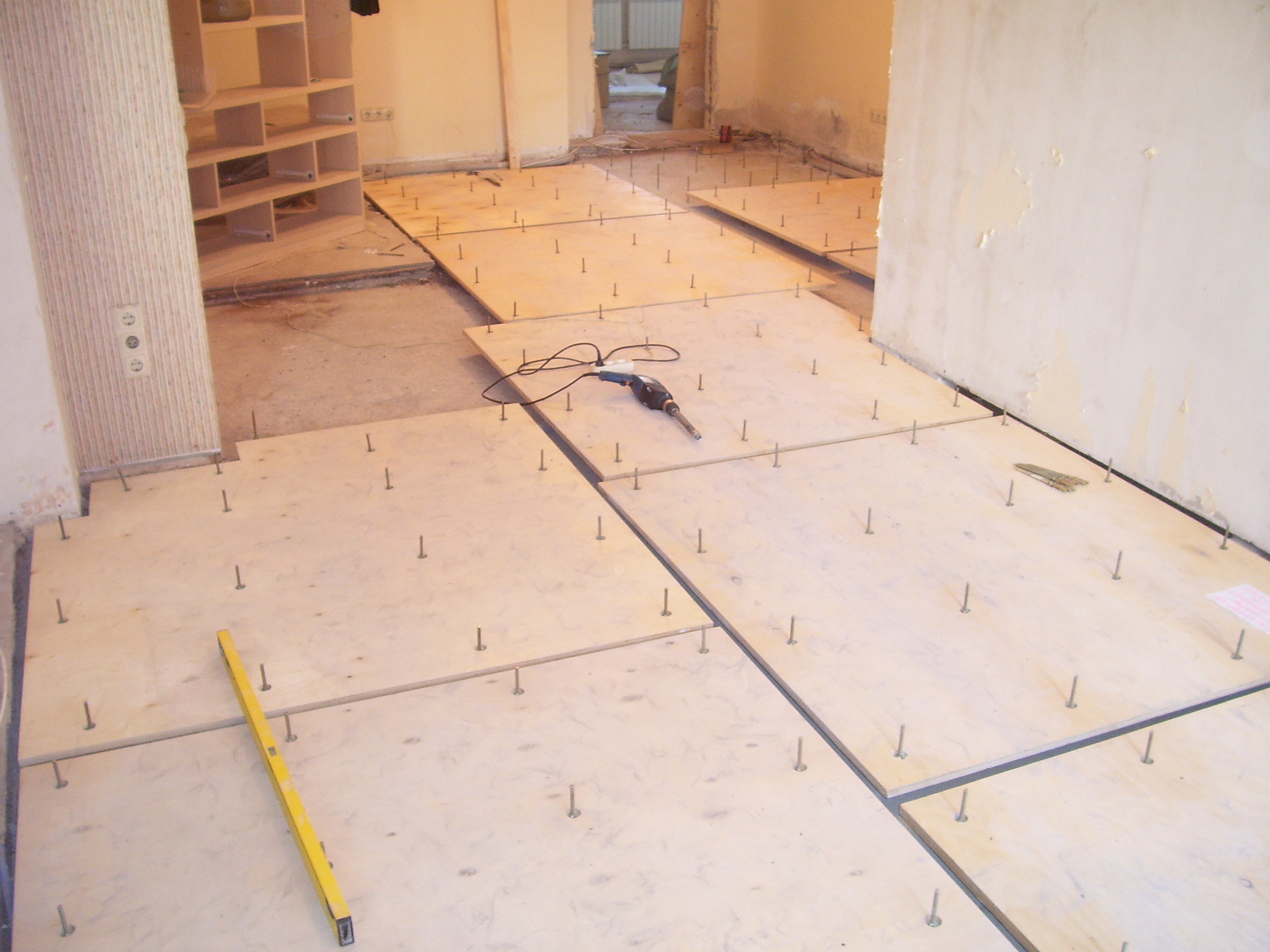 В полу заделываются шпаклевкой все трещины, после чего он покрывается