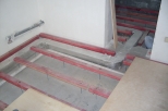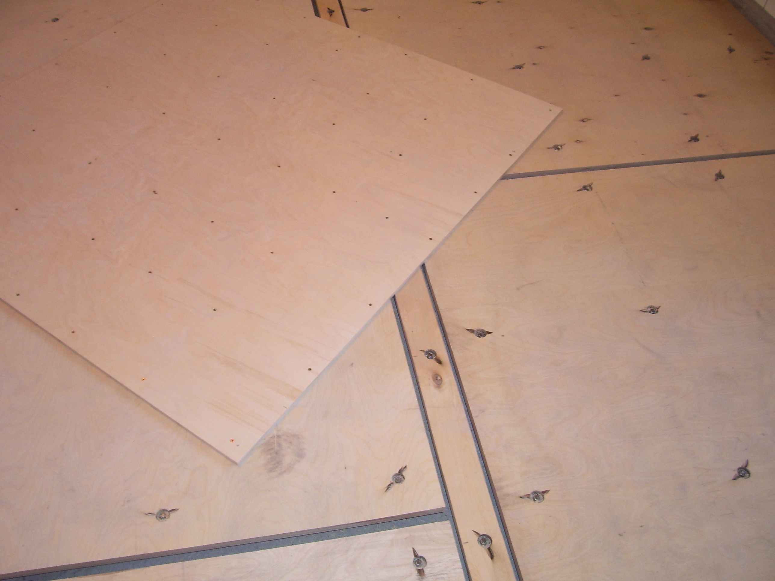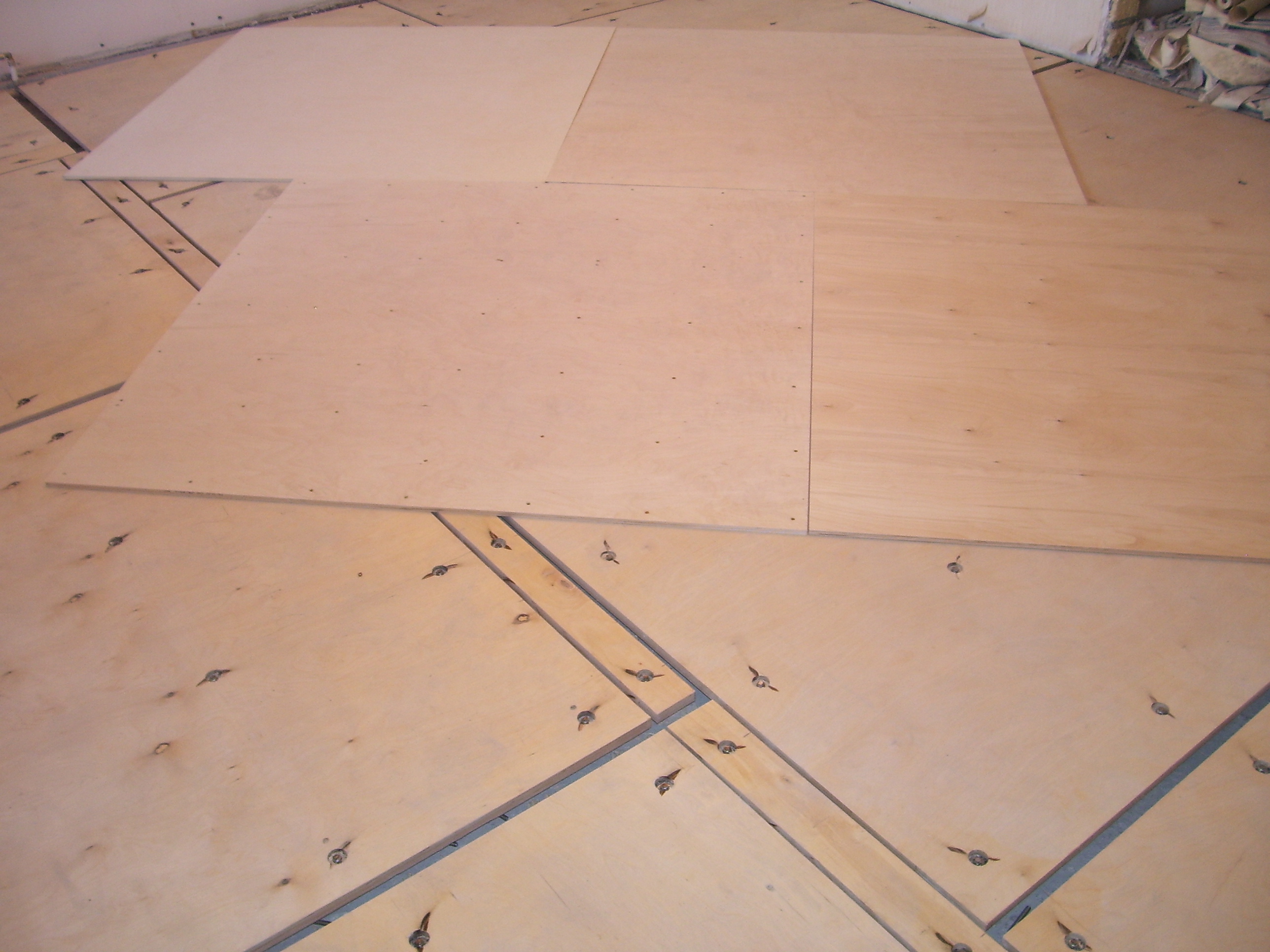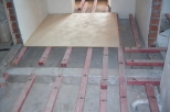 Настил деревянного пола своими руками вразбежку проводится в том случае, если длины досок не хватает на всю длину помещения. Для плотного прижатия досок используются колодки. Последний ряд закрепляется аналогично первому - через лицевую сторону доски, ближе к стене.