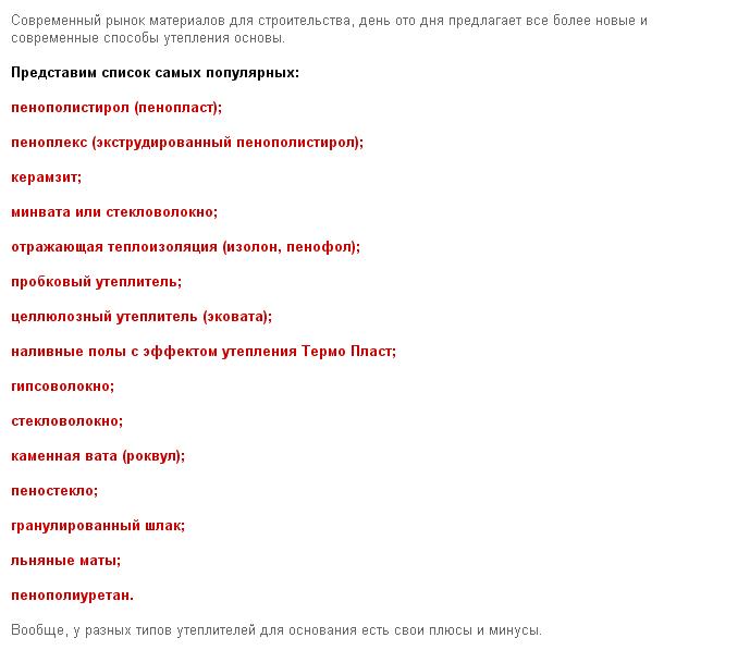 Для того чтобы утеплить пол своими руками можно использовать множество материалов, каждый из которых имеет свои достоинства и недостатки.