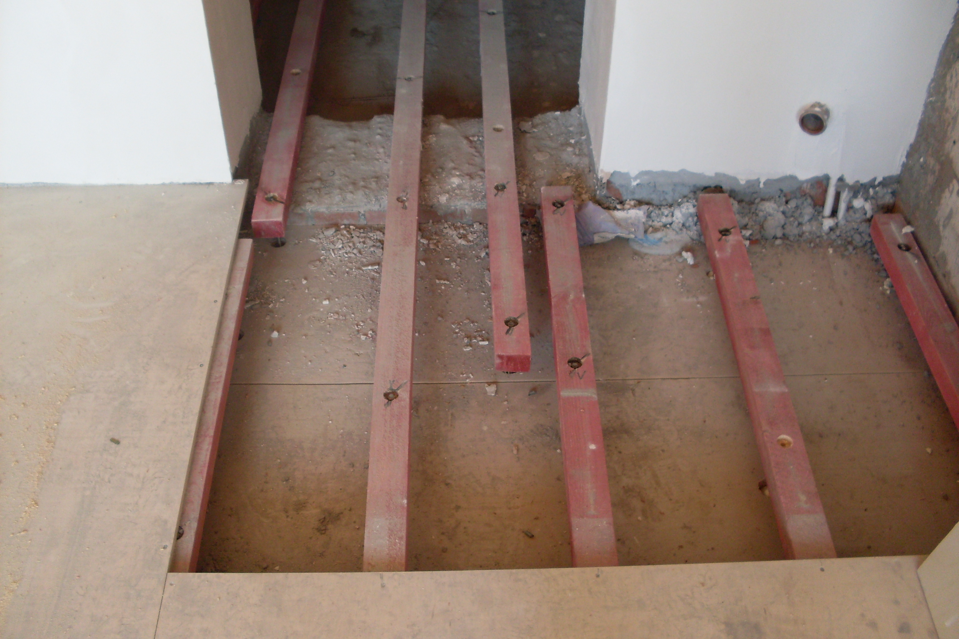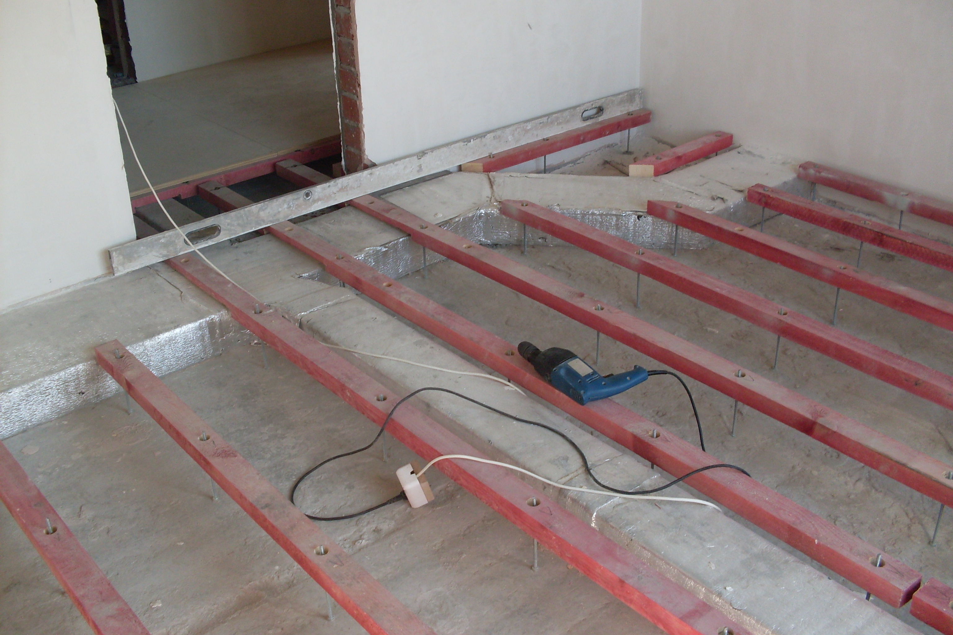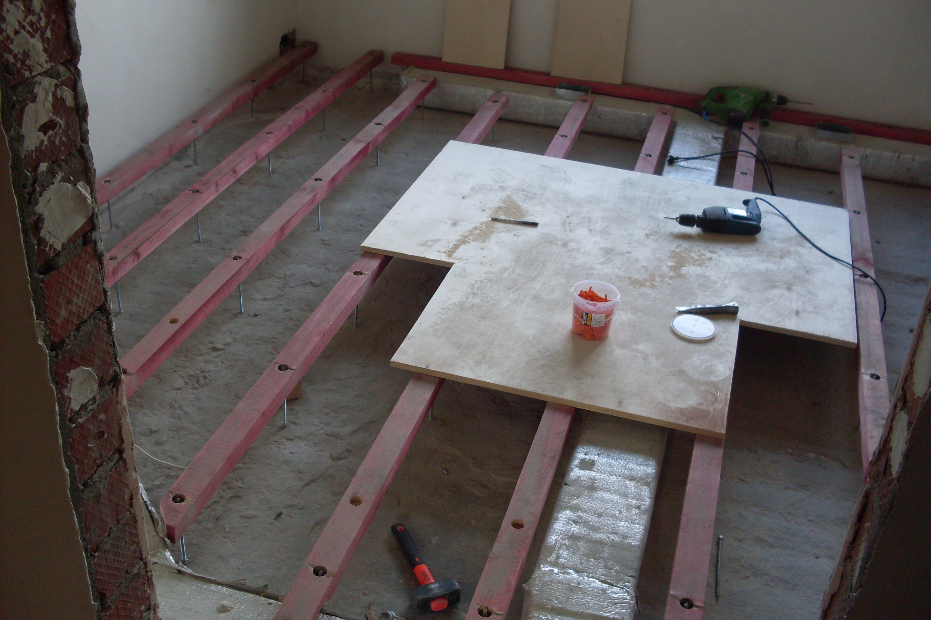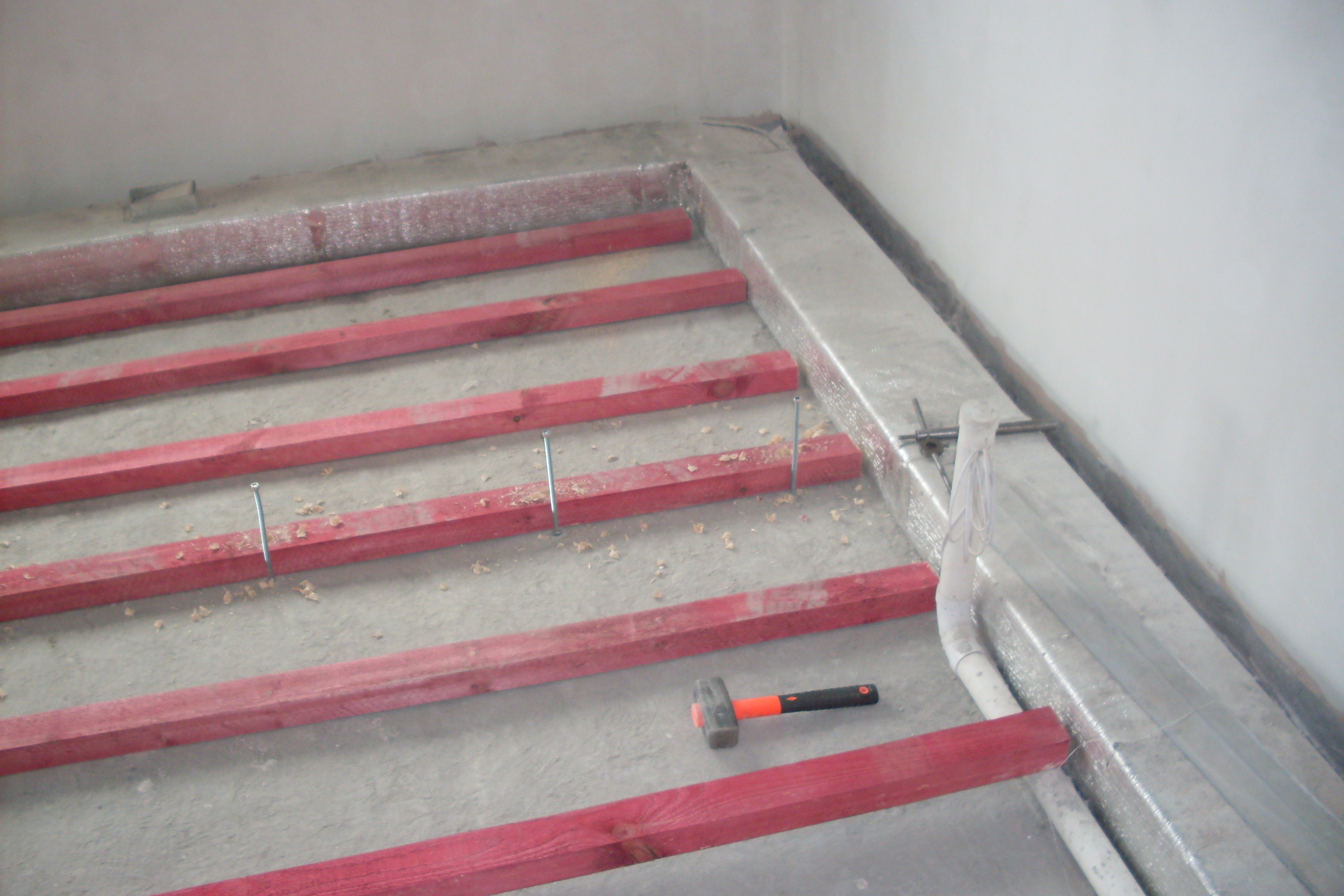 Монтируем полы по лагам и скрываем все инженерные системы.
