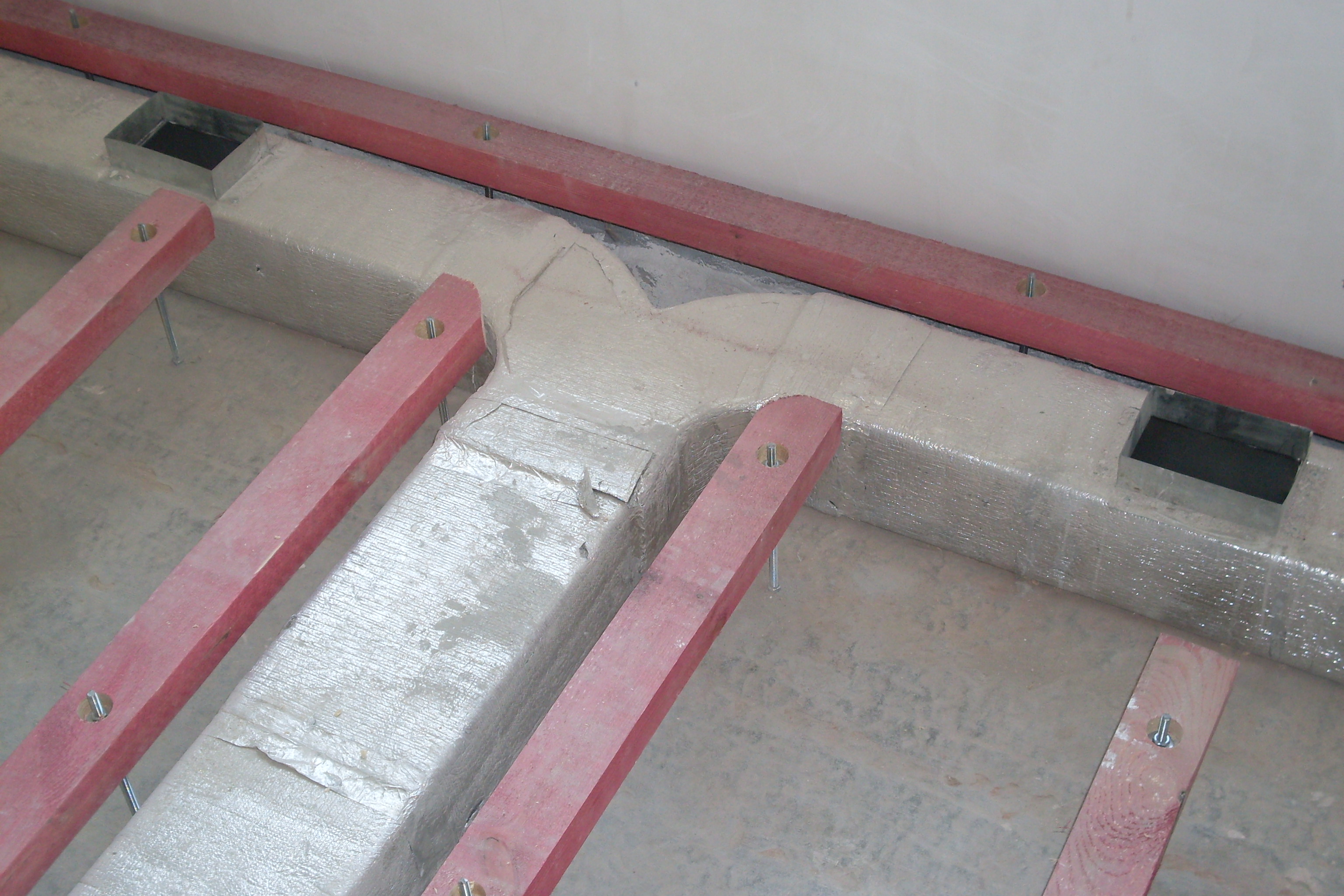 Полы по лагам своими руками позволяют скрыть все коммуникации, в данном случае даже коробы вентиляции.