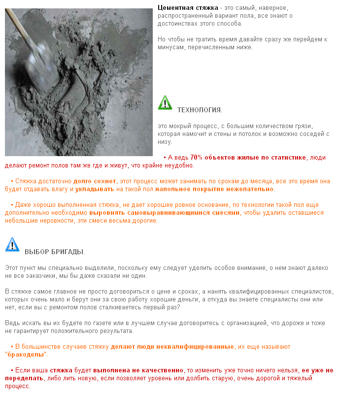В случае если на основание будет залит жидкий раствор, на полу будут образовываться трещины и сколы. Густой раствор будет трудно тщательно разровнять на поверхности.